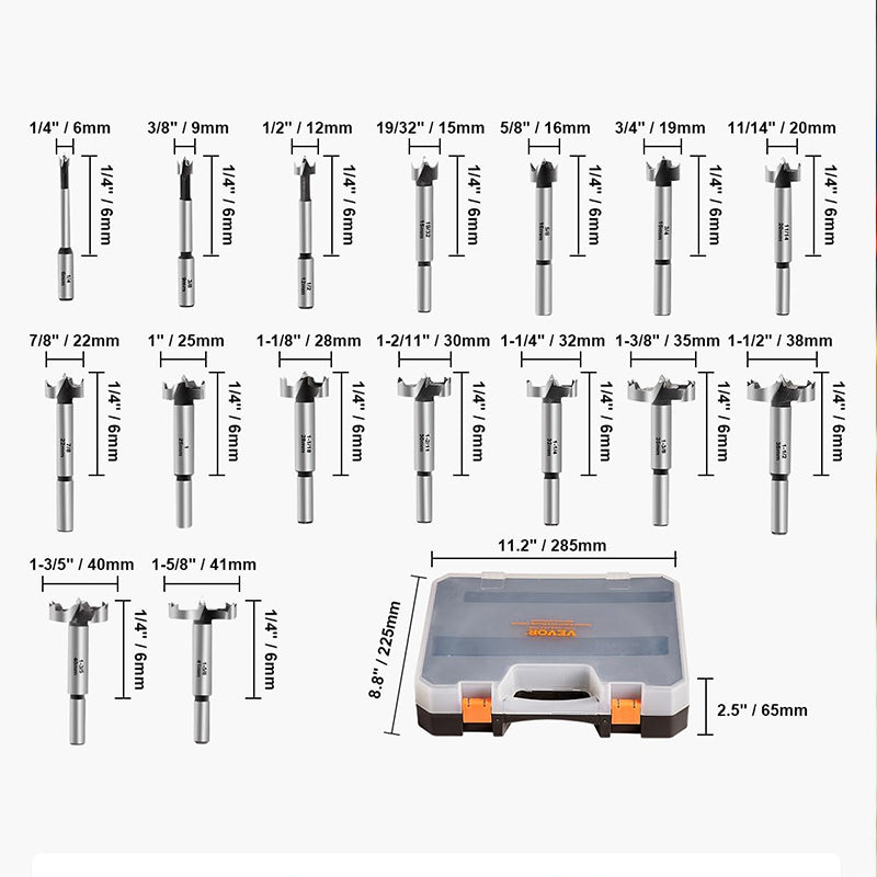 COMPLETE SPECS FOR UNIVERSAL APPLICATIONS: Includes Φ15–Φ35mm interchangeable drill bits (15–35mm sizes available). Compatible with electric drills and impact drivers. Perfect for furniture making, cabinetry, or DIY repairs—versatile for professionals and hobbyists alike.