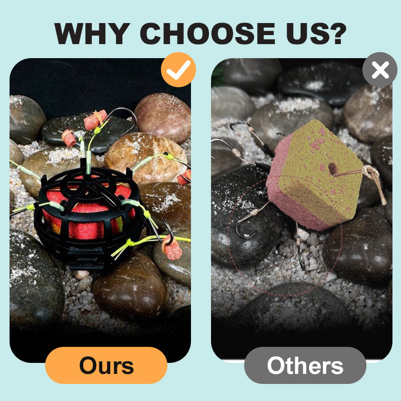 ALL-IN-ONE BAIT SYSTEM – Combines 6 sharp hooks with a spacious bait cage to attract fish faster. Load with cubes, pellets, or powder bait—creates irresistible scent trails that trigger feeding.