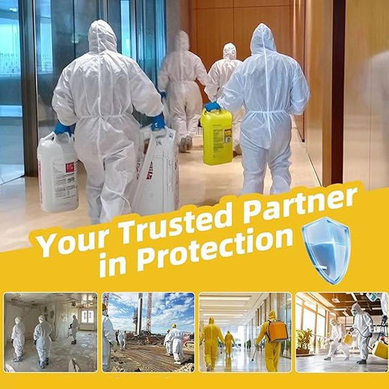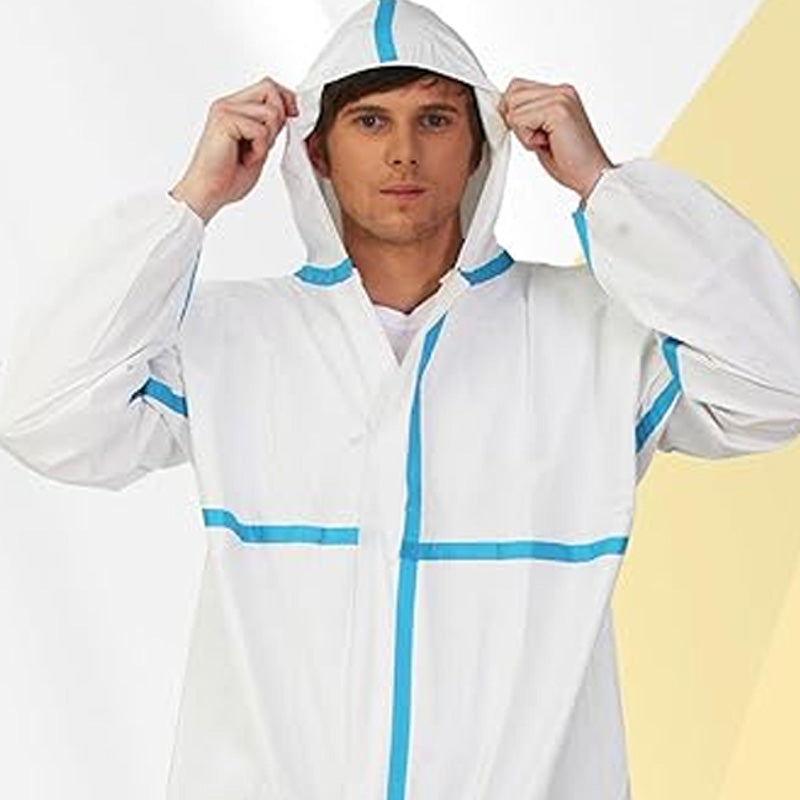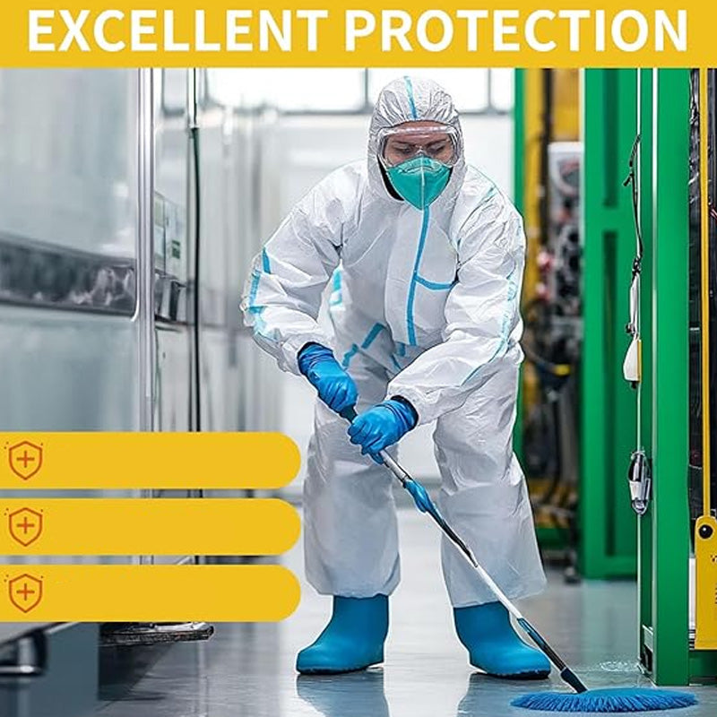FULL BODY PROTECTION – Provides comprehensive coverage from head to toe, including an attached hood, protecting against dust, dirt, liquids, and particulates. Ideal for medical, industrial, or cleaning environments where maximum safety is essential.