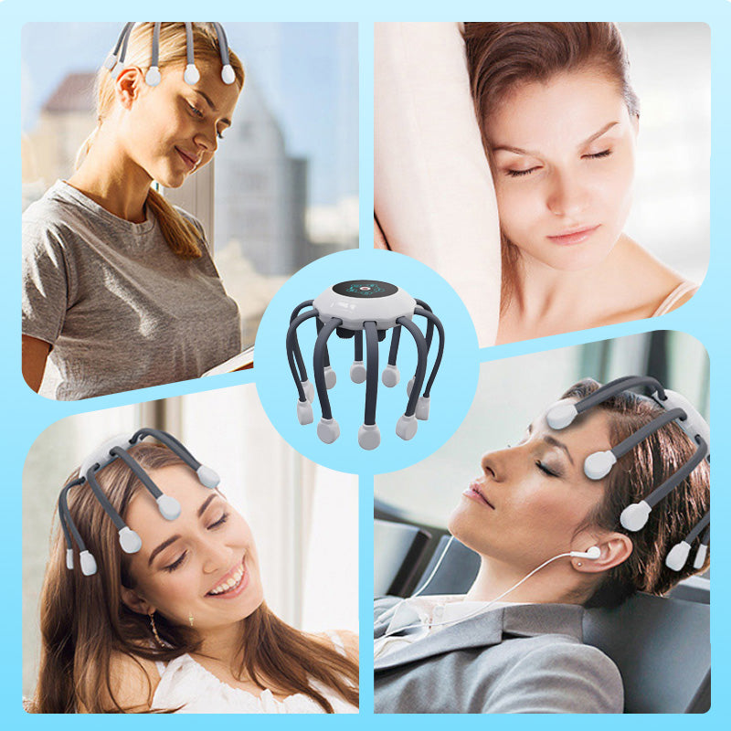 ADVANCED MULTI-POINT MASSAGE TECHNOLOGY - Featuring 14 independent massage nodes with point-matrix and lattice-like 360° distribution, this massager delivers precise, full-coverage stimulation. Its creative design mimics octopus, ensuring every scalp area is reached for unparalleled relaxation and tension relief.