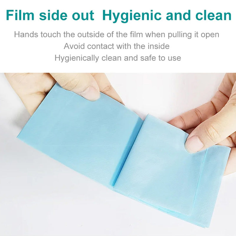 HYGIENIC OUTER-FILM DESIGN - The disposable toilet seat cover is designed with the film side facing outward. When you unfold it, your hands only touch the outer surface, avoiding contact with the inner part that touches the toilet seat. This smart design ensures maximum hygiene and peace of mind with every use.