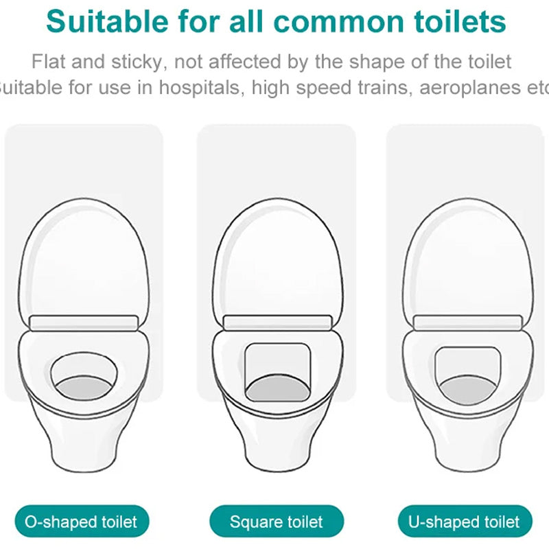 FITS ALL COMMON TOILET SHAPES - This disposable toilet seat cover is designed for flat adhesion and is not affected by the shape of the toilet. It works well on various types of toilets, including O-shaped, U-shaped, and square-shaped models. Perfect for use in hospitals, high-speed trains, airplanes, and more.