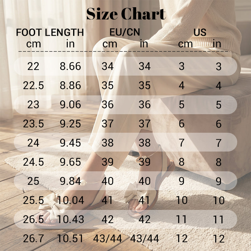 SIZE CHART FEATURES CHIC STATEMENT BOW DETAIL - Elevate your warm-weather wardrobe with this beautifully crafted, voluminous fabric bow. It creates a striking focal point, blending romantic aesthetics with modern sophistication for any occasion. DISTINCTIVE PEARL ANKLE CUFF - Stand out with the unique metallic ankle strap featuring a striking faux pearl and gold ball. This innovative cuff design provides both a secure fit and luxurious aesthetic. ALL-DAY CUSHIONED COMFORT - Experience unparalleled comfort with the flat, ergonomically designed footbed. The lightly cushioned brown insole supports your natural arch, making these sandals perfect for long summer walks. FLAWLESS WARDROBE VERSATILITY - From casual frayed denim to elegant flowing maxi dresses, these sandals adapt to any outfit. Their neutral cream and brown palette makes them an essential versatile staple. EFFORTLESS SLIP-ON CONVENIENCE - Say goodbye to complicated buckles and straps. The smart open-back design with a flexible metallic ankle cuff allows you to slip these sandals on and off effortlessly in seconds. SPEC Color: Black, Green, Orange-red, Brown, Beige, White, Wine Red Size: 36, 37, 38, 39, 40, 41, 42, 43 Material: Upper: PU; Sole: TPR PACKAGE INCLUDES 1 x Pair of Sandals NOTES Color may not appear as exactly as in real life due to variations between the computer monitors. Please allow a small error due to manual measurement. Please make sure you do not mind before purchasing.
