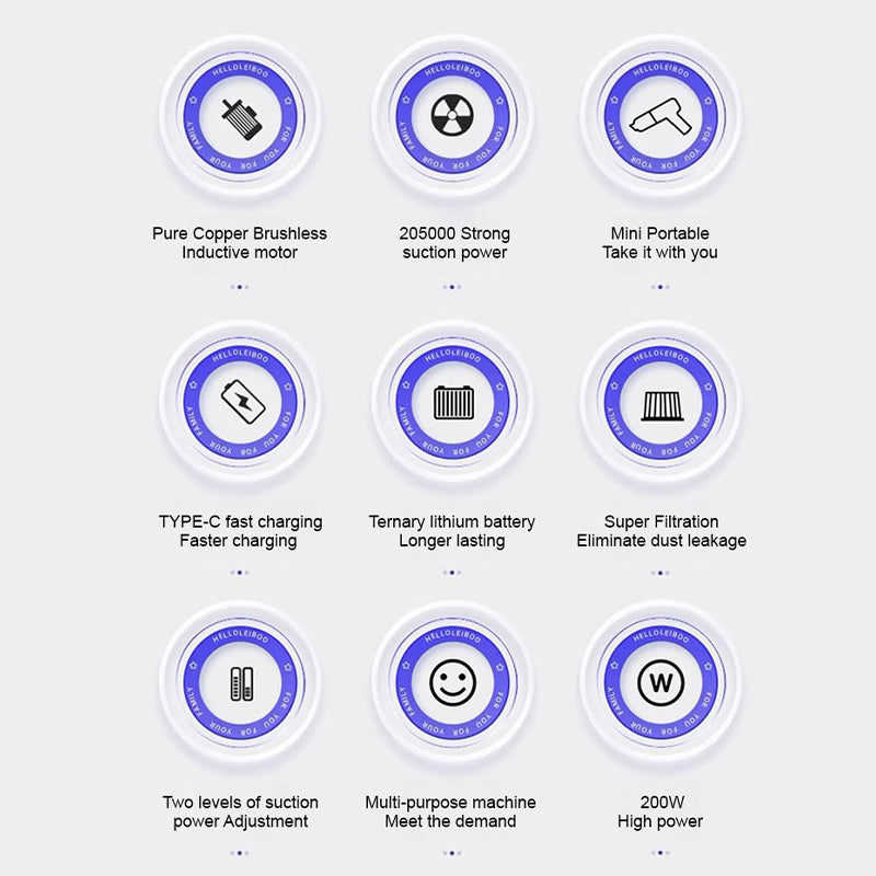 Package Includes:1*Powerful Portable Multi-Functional Vacuum Cleaner, 1*Long Nozzle, 1*Brush Nozzle, 1*Charging Cable, Manual, Hair Dryer